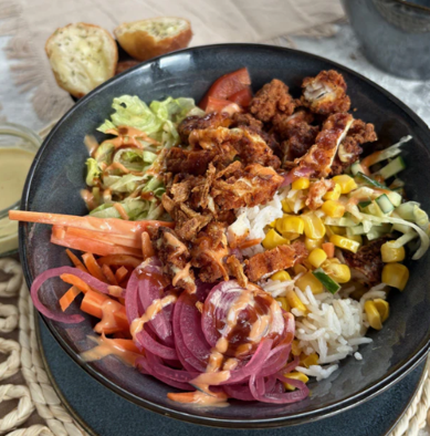 Die Auszeit ist der Ort, an dem gekocht wird und hier bekommst du natürlich auch die volle Hungry Collective Essensauswahl. Kommt vorbei - Sonnenterrasse inklusive.